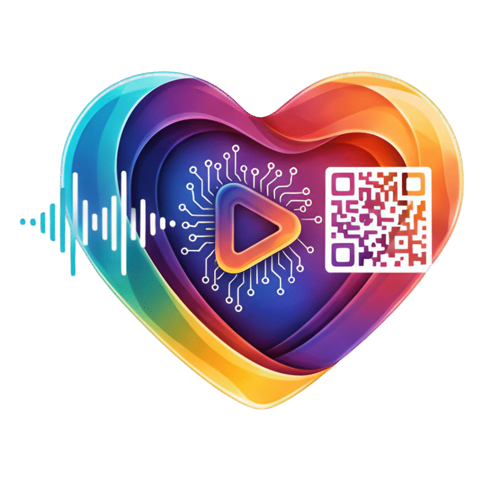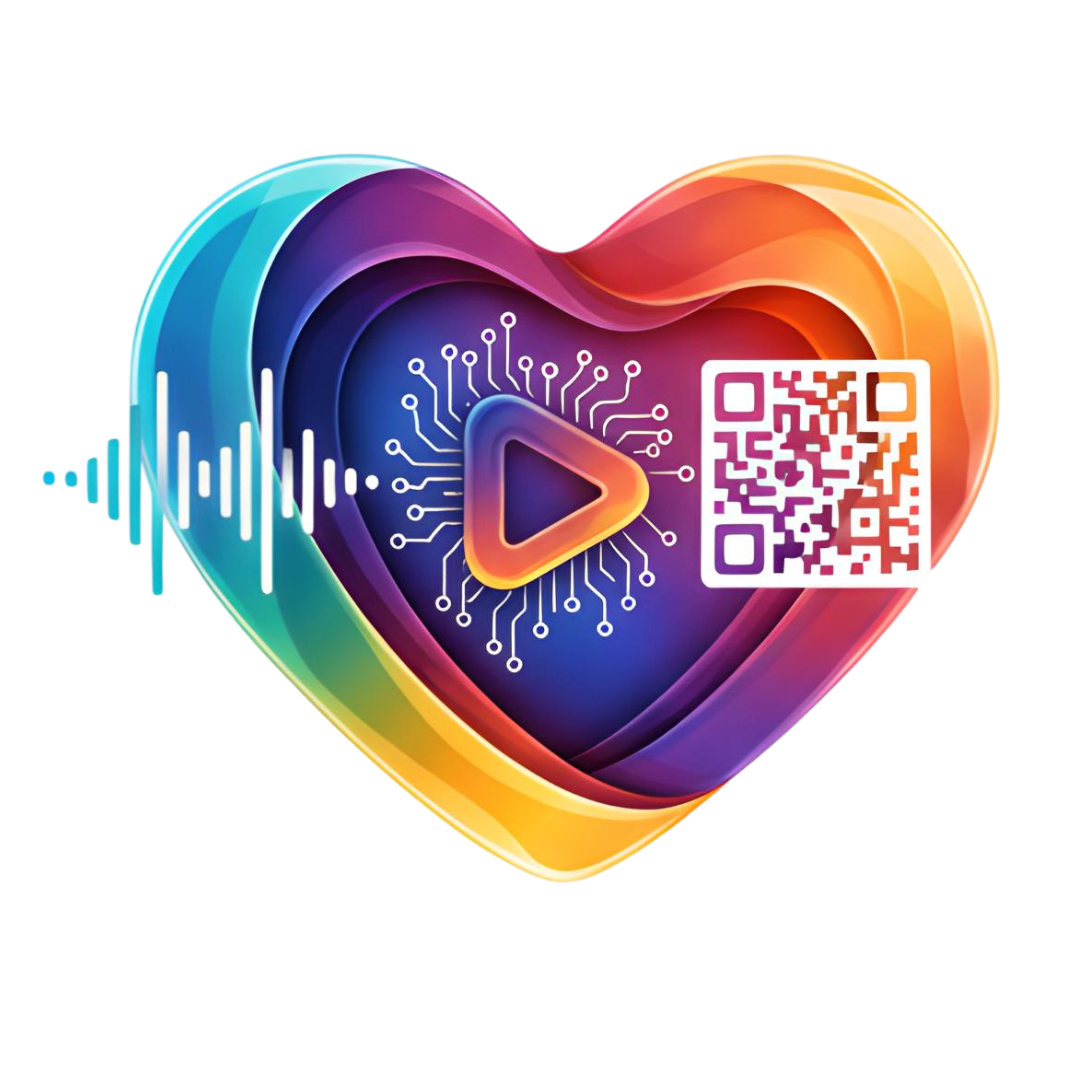 Cada produto vem com um QR Code exclusivo que leva a uma mensagem personalizada em áudio ou vídeo, com locução profissional ou sua própria voz.